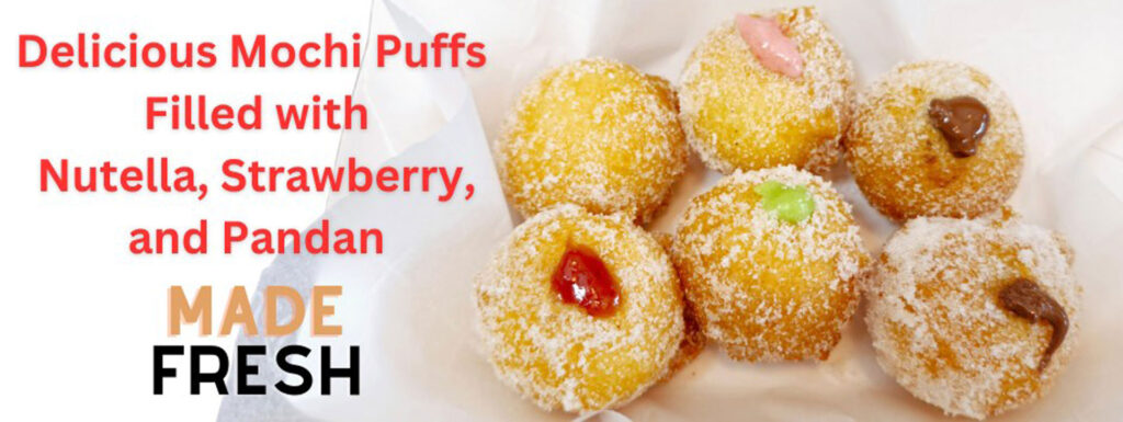 Mochi Munchies is a dessert shop. We make premium mochi munchies such as donuts, puffs, ice cream, drinks and more. Mochi donuts, also known as poi mochi, are a fusion pastry crossing traditional American doughnuts and Japanese mochi. The mochi donuts’ “hybrid batter makes for a doughnut that is fluffy and moist, with a satisfying chew.